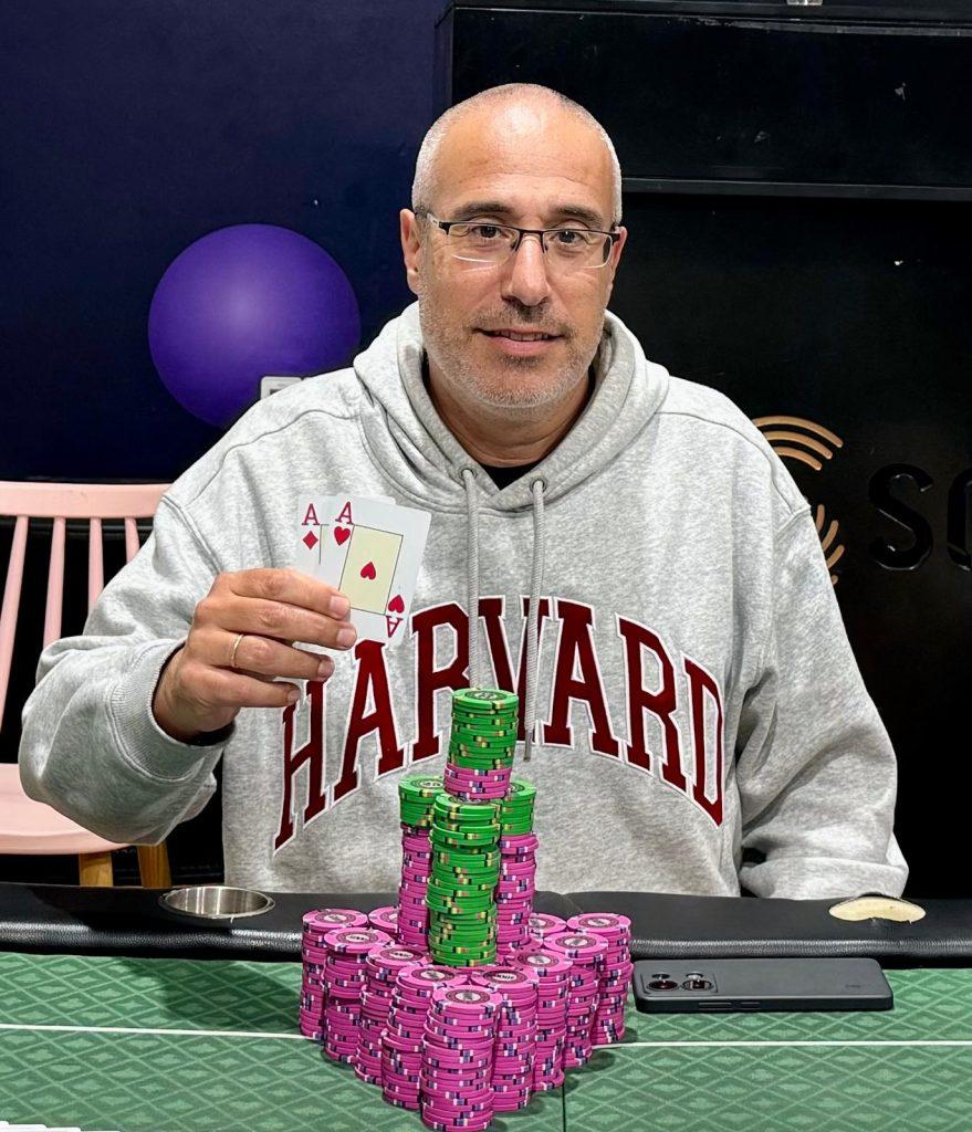 מתן שמעון זרד הודח מהטורניר וניגש לקופה לסדר לעצמו ערימה חדשה.